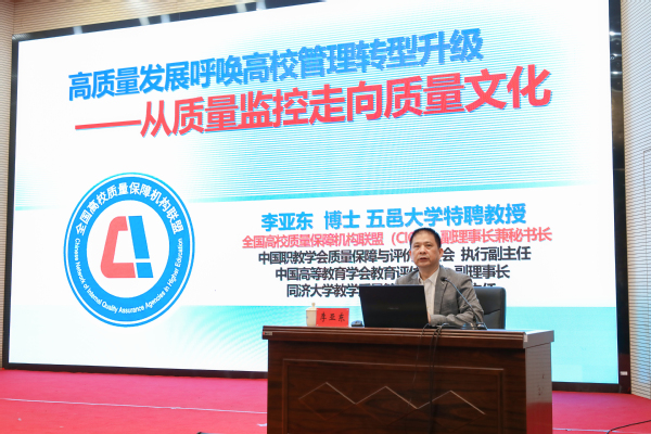 的必要性、现状及未来方向。他强调,高校管理需从传统的质量监控模式向质量文化模式转变,这一转变不仅是教育高质量发展的内在要求,也是提升学校治理效能的关键路径。通过分享国内外高校在质量文化建设方面的先进做法,李亚东教授鼓励教育教学管理人员要勤于思考、勇于创新,主动探索适合本校特色的质量保障体系,共同营造以质量为核心的教育生态。